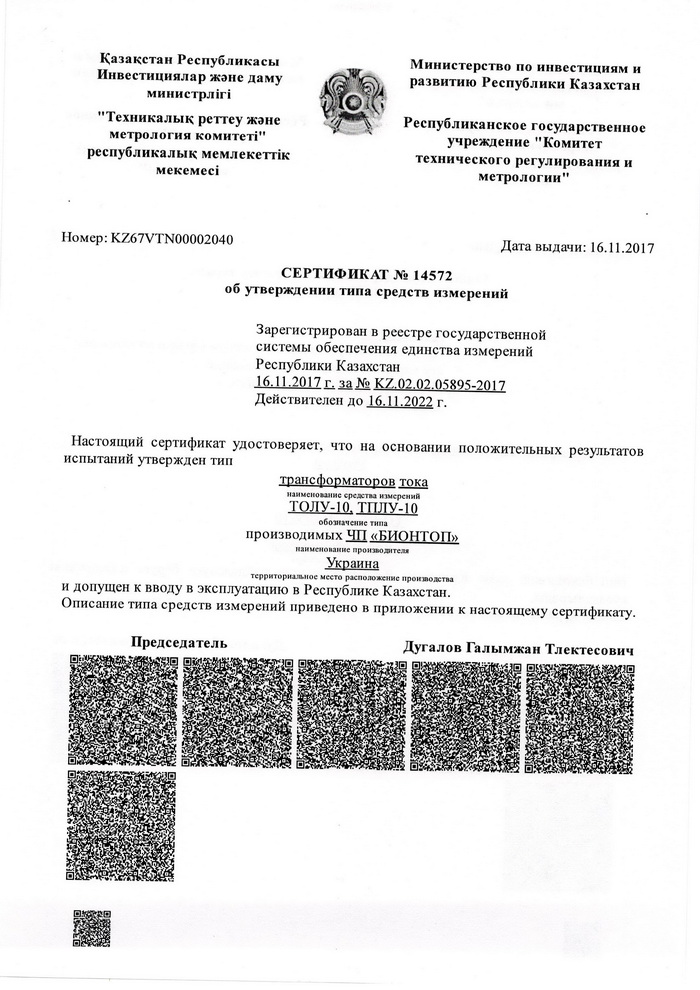 Трансформатори відповідають ДСТУ EN 61869-1:2017, ДСТУ EN 61869-2:2017, ГОСТ 7746-2015.