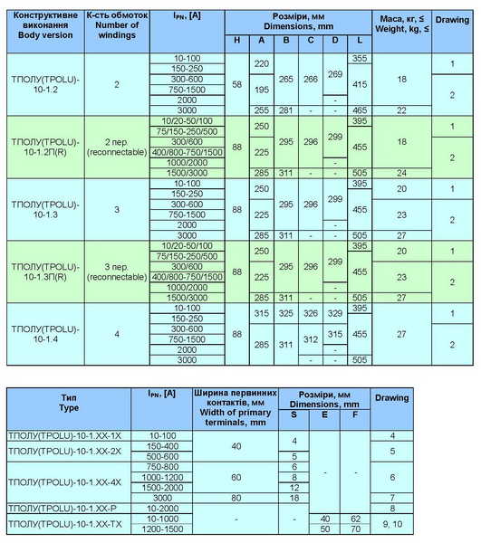 Класи точності вторинних обмоток: 0,2S; 0,2; 0,5S+; 0,5S; 0,5; 5P; 10P;