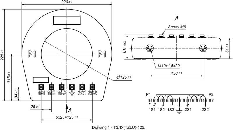 Трансформатори ТЗЛУ-125 мають коефіцієнт трансформації основної обмотки - 30/1, 60/1 и 6/1 додаткової обмотки контролю захисту, яка призначена для перевірки роботи релейного захисту , згідно таблиці 1.