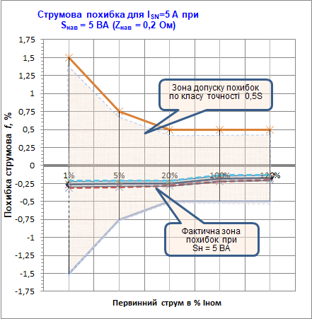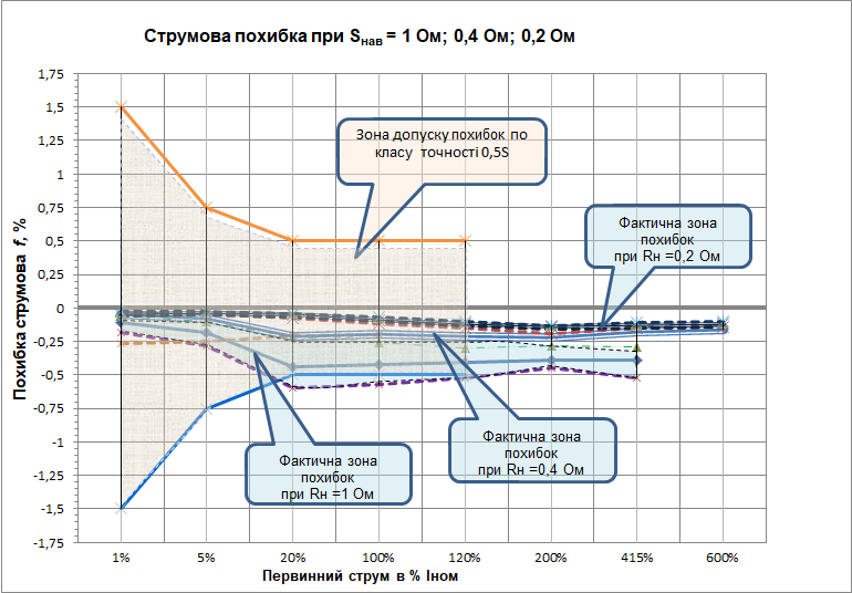 Обмотка трансформаторів виконана на осерді з нанокристалічного сплаву. Це забезпечує отримання великого лінійного динамічного діапазону характеристик обмотки по струму та куту. При цьому забезпечується довгочасна стабільність характеристик упродовж всього строку служби трансформатора та стійкість осердя до намагнічування (від однополярних імпульсних струмів КЗ трифазного кабелю). Окрім цього забезпечується коефіцієнт безпеки приладів не більше 3, що значно зменшує аварійні перенавантаження вимірювальних приладів, які підключені до вторинної обмотки.